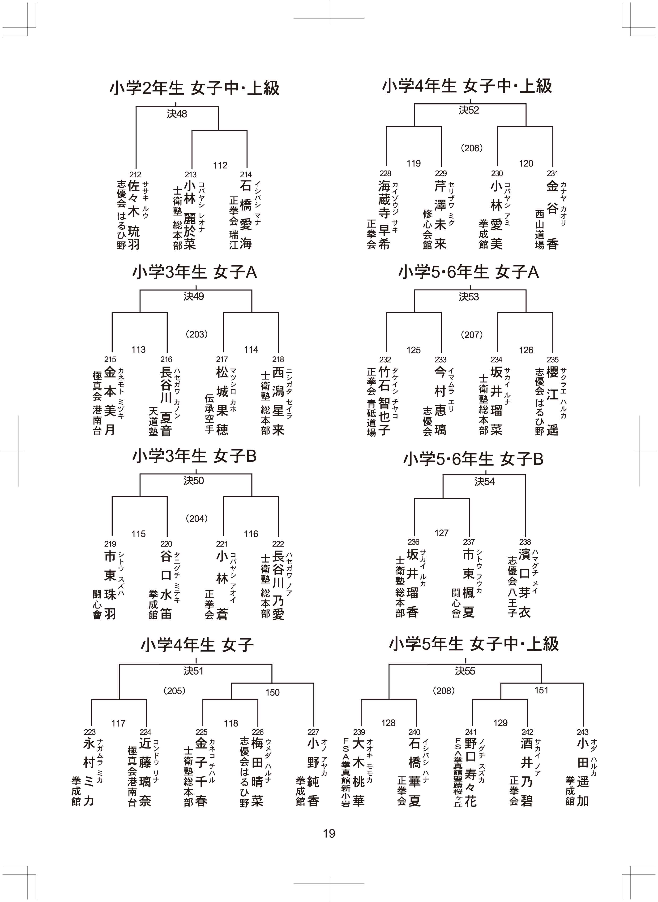 女子2年中上級 3年 4年初中上級 5,6年初級 中上級