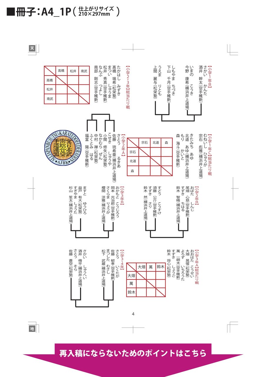 日曜日に開催します松栄塾チャンピオンシップ練習試合のトーナメント組み合わせが